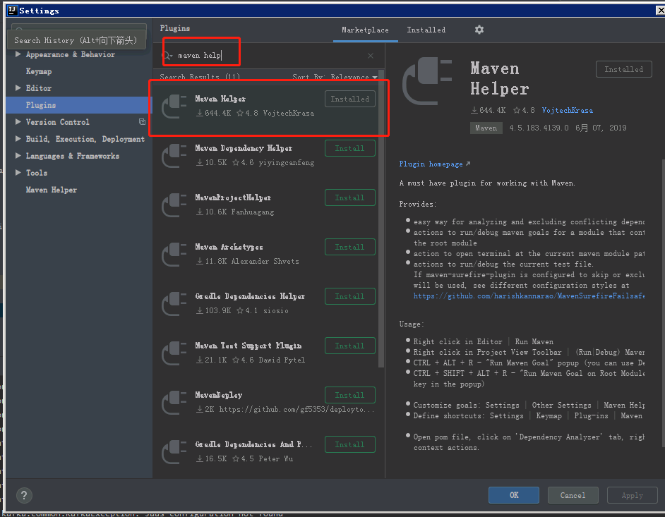 打开Settings,搜索maven helper,并安装
