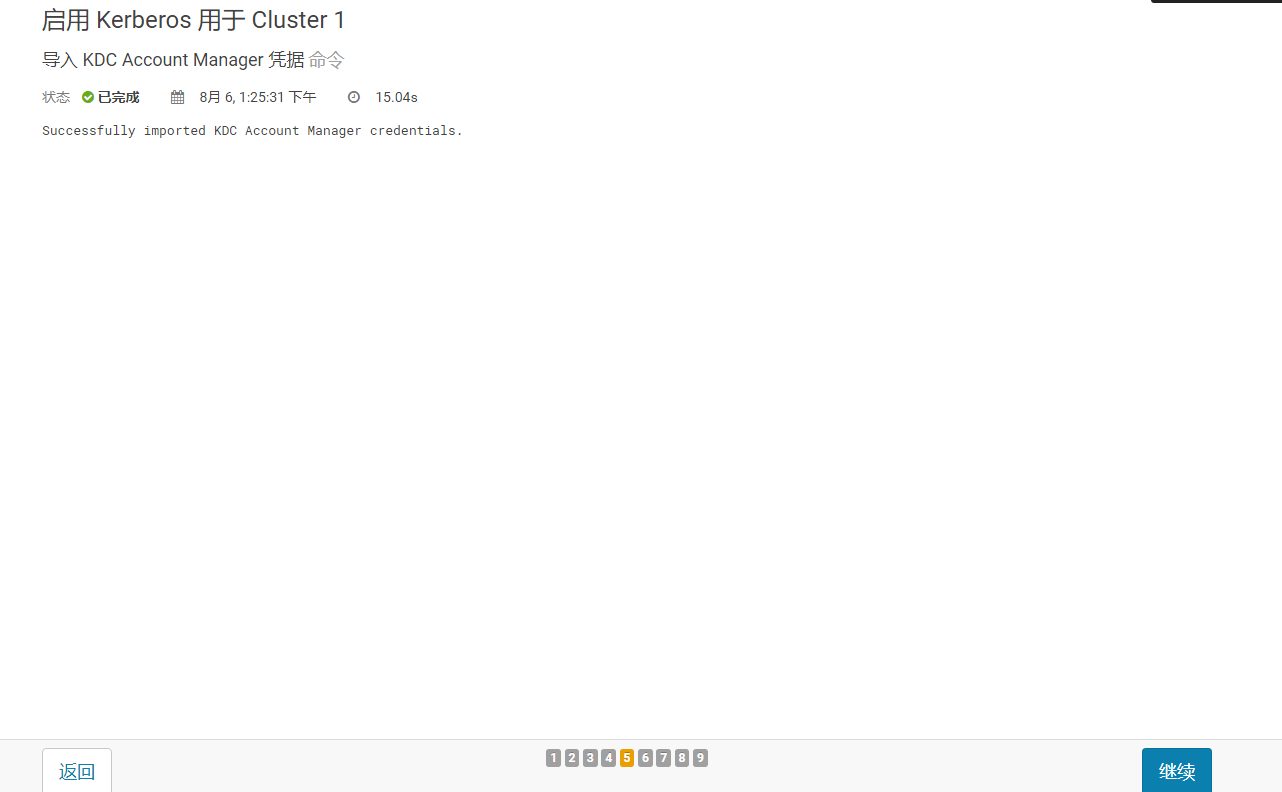 - 不建议让Cloudera Manager来管理krb5.conf, 点击“继续”