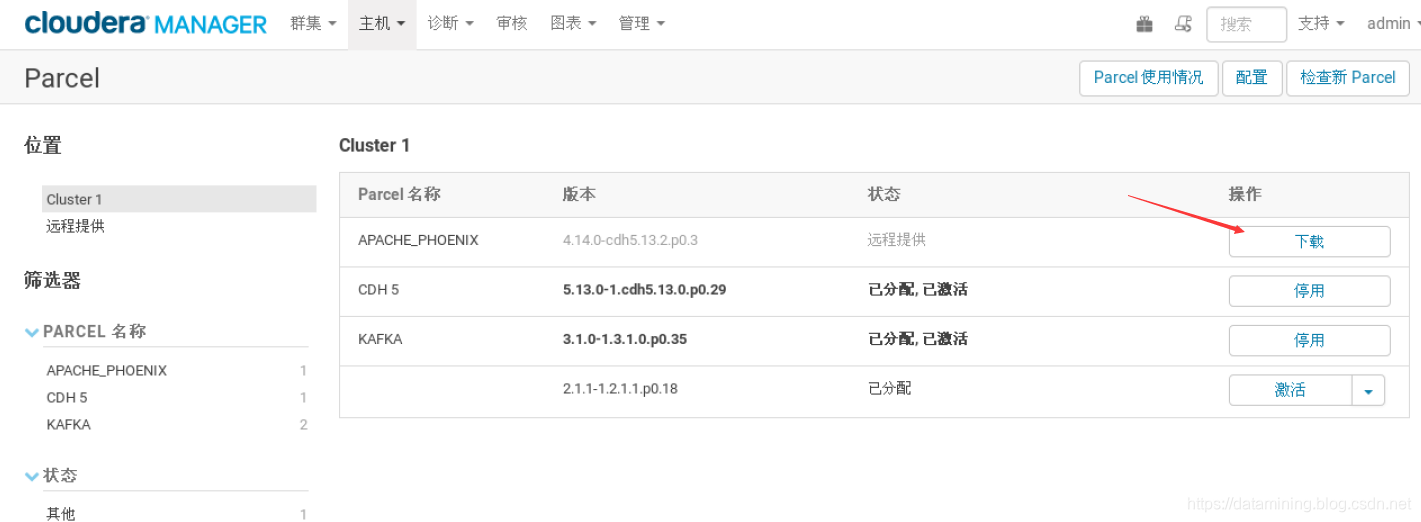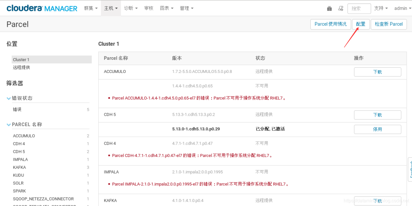 登陆CDH管理界面,选择 Parcel