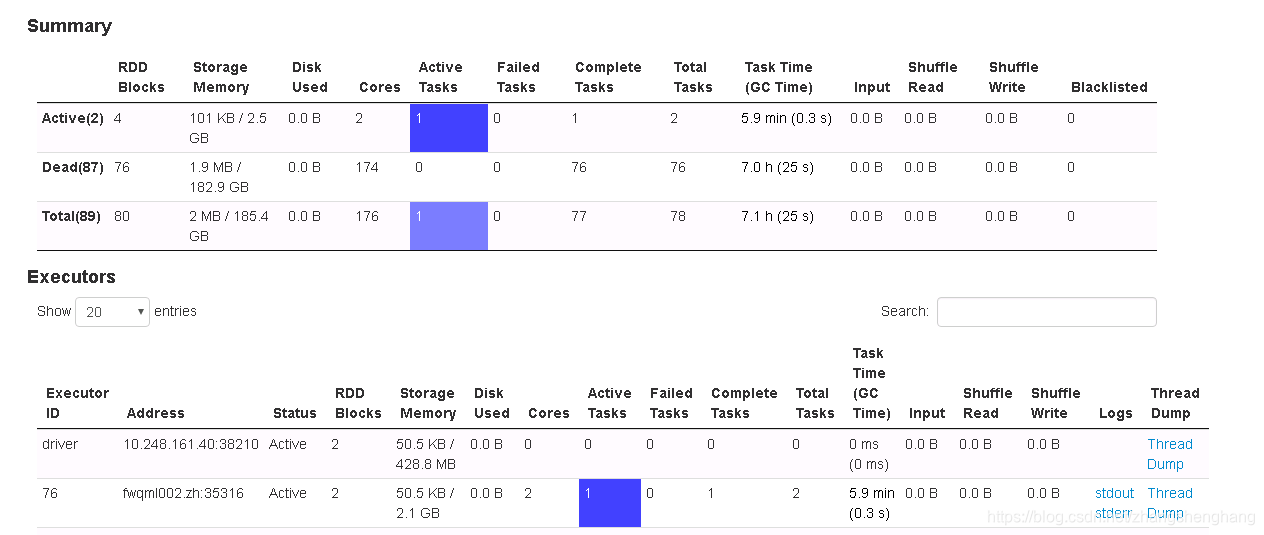 执行Spark处理Hbase数据时,遇到某两个Excutor处理速度特别慢,如图