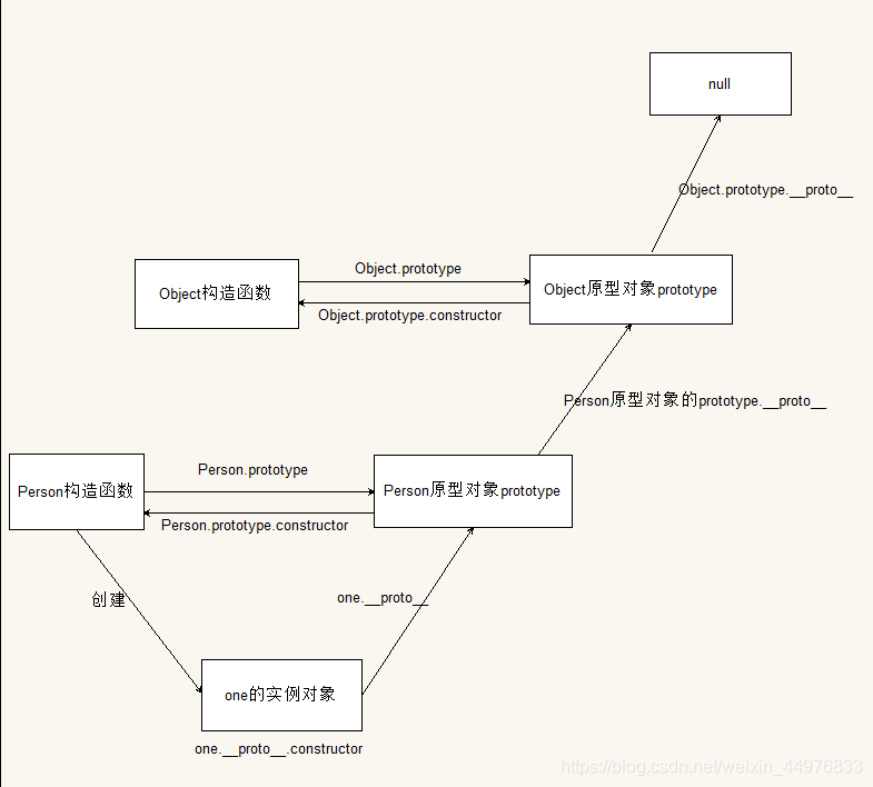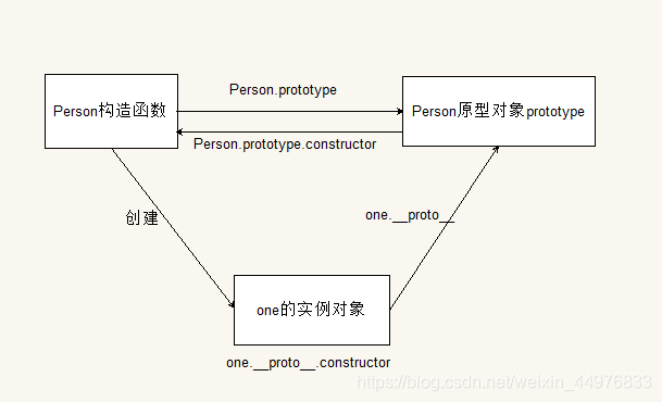 2.实例对象是由构造函数创建的,实例对象的__proto__属性指向了构造函数的原型对象;