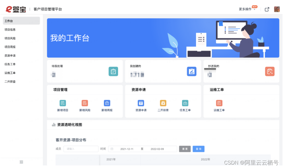 随着公司业务的不断壮大,e签宝不断加大对内部信息化发展的投入,但企业需要交付的项目越来越多,传统交付管理模式亟待改进,尤其是项目数据的统计、整合与同步都需要更加清晰高效。为此,项目交付层面的数据管理信息化,就成为了e签宝的重点建设目标。