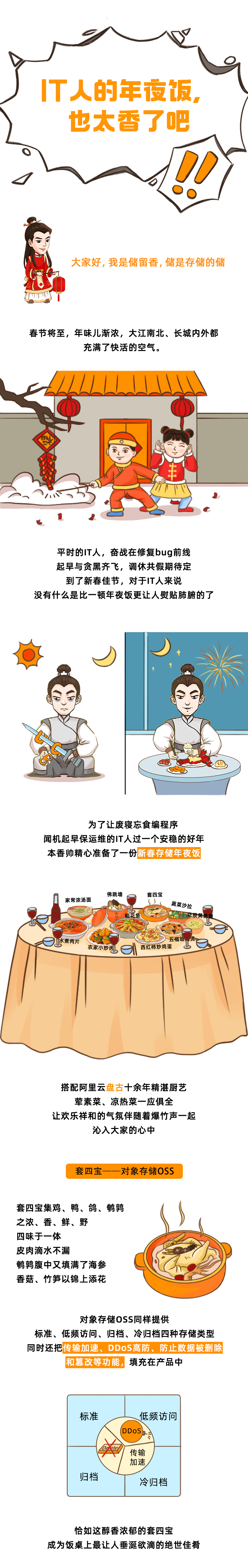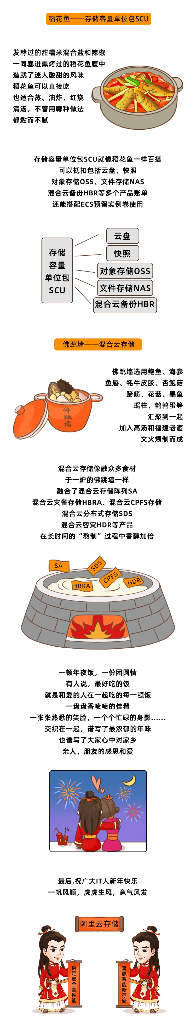 简介: 平时的IT人,奋战在修复bug前线,起早与贪黑齐飞,调休共假期待定。到了新春佳节,对于IT人来说,没有什么是比一顿年夜饭更让人熨贴肺腑的了。为了让废寝忘食编程序、闻机起早保运维的IT人过一个安稳的好年,本香帅精心准备了一份新春存储年夜饭。
