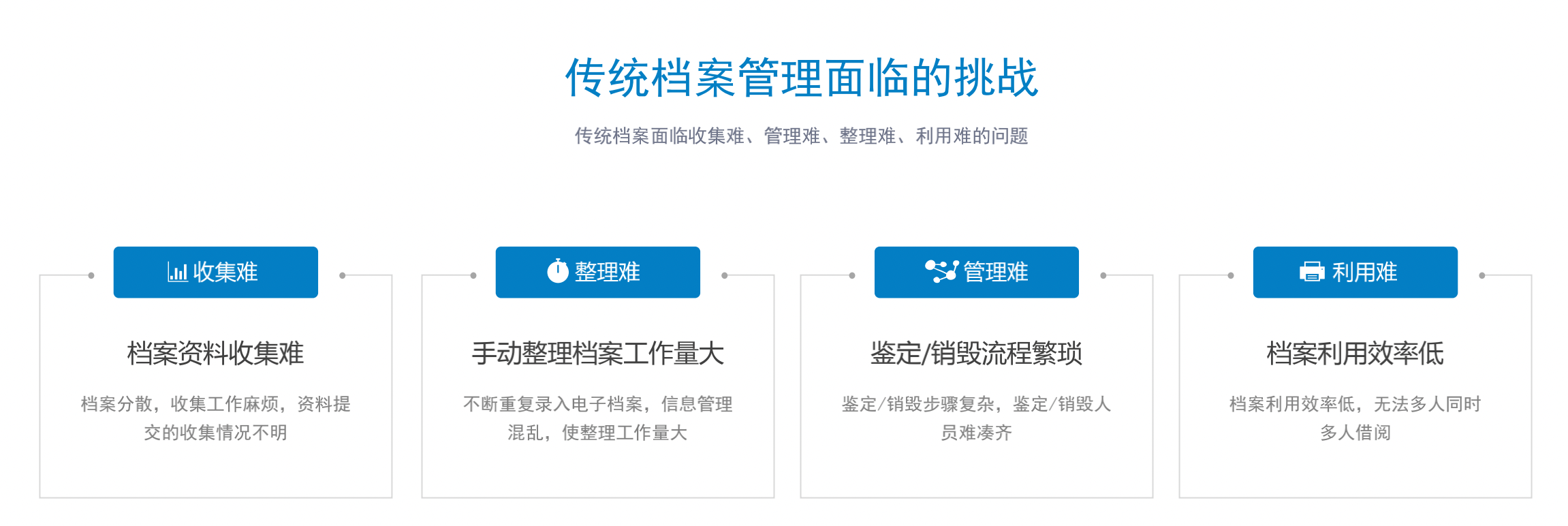 传统走向新生,往往都不是一蹴而就的,在档案管理数字化转型的过程中,各个阶段都会出现不同的挑战——