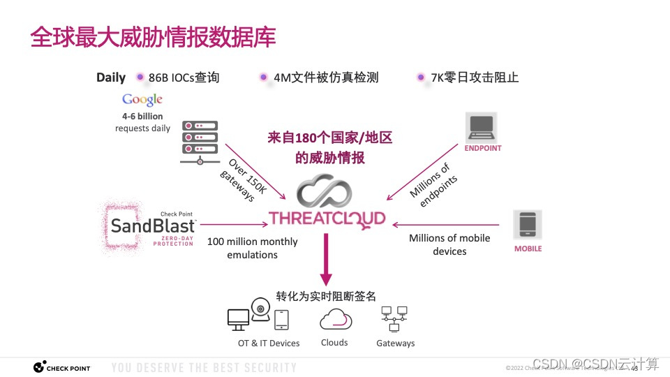 除了新发布的重磅安全产品,王跃霖也介绍了Check Point在云原生安全领域的产品与架构,以及Check Point最核心的ThreatCloud安全威胁情报库的发展。目前ThreatCloud已经落地中国,为Check Point中国用户的安全服务提供支撑。