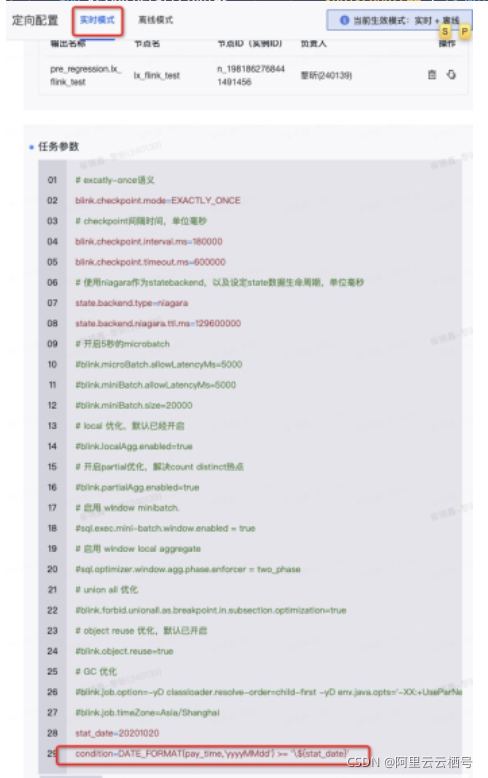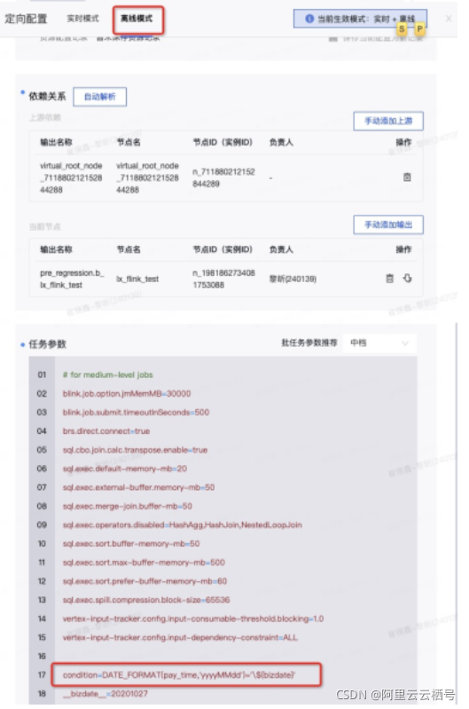 第二种是在Dataphin的任务配置实时和离线模式分别任务参数的方式是利用任务参数进行替换。