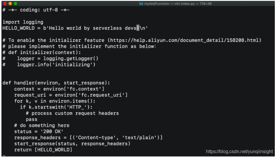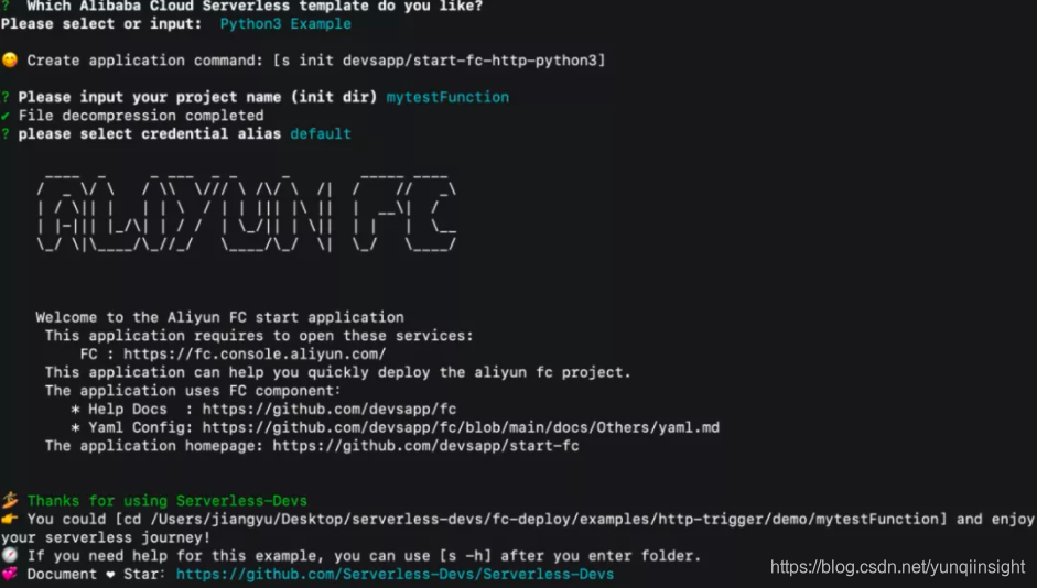 通过 s init 创建一个函数(选择 Aibaba Cloud Serverless, 选择 HTTP Function - Python3 Example ):