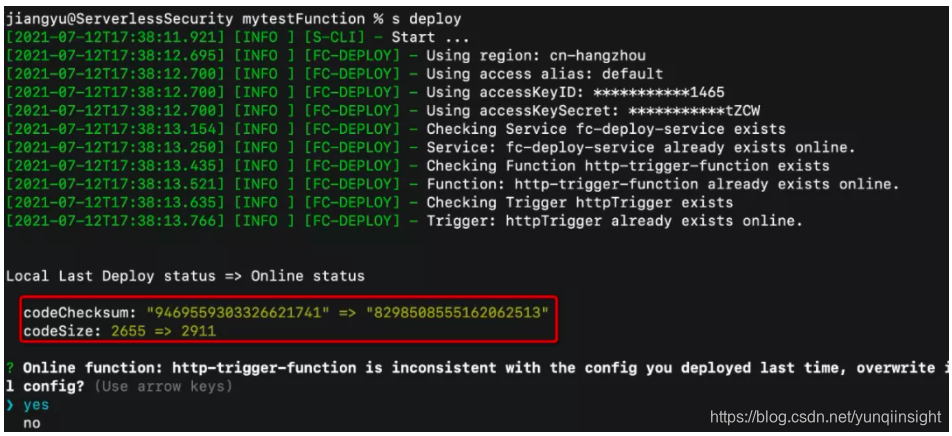 此处需要额外说明的是,只要是函数计算的服务,函数,触发器发生变化,此处都可以进行感知,不管是配置还是代码。