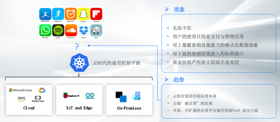 未来我们会看到,Kubernetes 它不仅会出现在各种不一样的地方,更重要的是它会为应用软件的研发、运维、交付的全生命周期提供一系列完整的能力,让用户可以使用它。与此同时,为了能够更好地把软件交付出去,我们会发现未来还会有很多这样的项目专门帮助你去解决软件在 K8s 上交付的问题。与此同时,我们以前的传统 PaaS 会不复存在,因为它的能力已经全部被 Kubernetes 接管了,而未来会出现更多的这种开放的可扩展的 PaaS,他们的作用是让你能够去更好地更简单地交付和管理软件,就像安卓上的豌豆荚,可以很容易地去管理软件。对于这样一个趋势,我把它叫做 Kubernetes 的“安卓化”。
