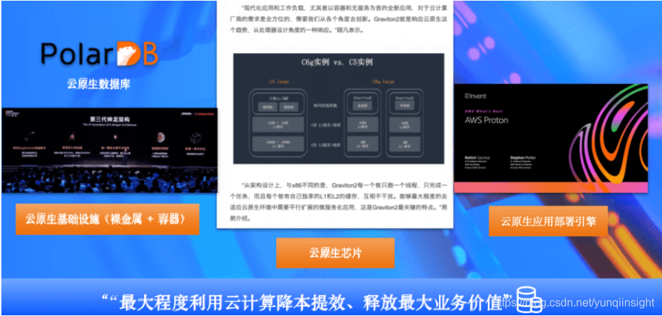 比如说,今天阿里云的云原生数据库,它实际上就是基于云原生提到的核心的思想理念,比如说无限弹性、高度可扩展,提出了一个全新的数据库架构,使得数据库的本身非常容易去扩展,能够去应付极高的、极为苛刻的流量和海量的数据处理需求,满足今天现代互联网应用的数据库使用的诉求。