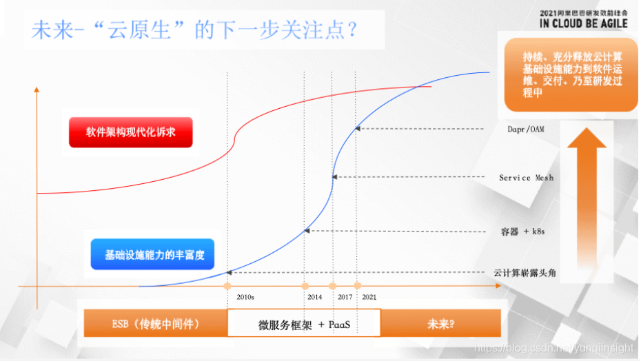 未来我们的整个云计算发展,包括云原生背后的关注点一定也是这样,不断地、持续地、充分地去释放云计算的基础设施能力,到软件的研发交付乃至整个生命周期当中,这是非常重要的一点。因为未来云的能力一定是越来越强,伴随这样一个趋势我们才会看到,云原生一定是在逐步引领整个云计算生态。