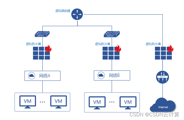 通过虚拟防火墙实现的虚拟机资源细粒度安全防护,当虚拟机发生迁移时,相关安全策略也会跟随虚拟机进行迁移。另外,针对对等保要求较高的项目,InCloud SmartFlow还提供通过虚拟化平台支持二层或三层引流功能,对接第三方安全资源池,引入IPS/IDS,DDOS、WAF等安全网元,轻松实现入侵检测与流量清洗,提供更加安全的支持策略。