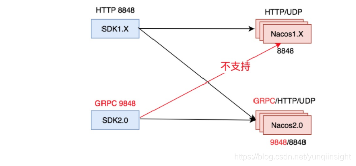 SLB的服务端口最后也会增加GRPC 9848端口,此时应用SDK可以从1.X版本升级到2.0版本,整体客户端服务端升级到2.0架构