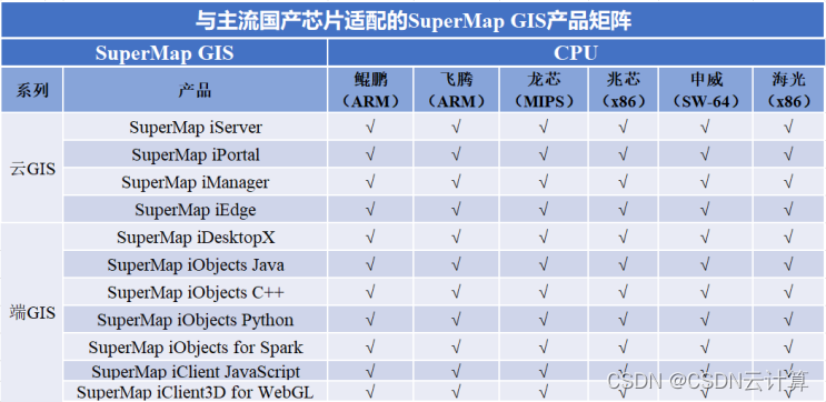 (2)SuperMap GIS产品与主流国产芯片的适配矩阵