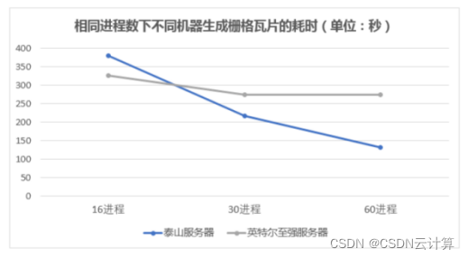 如上图所示,对于基础图元绘制和栅格瓦片生成这两个GIS功能,随着进程数的增加,ARM架构服务器完成任务的耗时线性减少,并最终少于x86架构服务器;且进程数越大,ARM架构服务器的性能表现越好,双方耗时差距越明显。可见,在实际应用中,ARM架构服务器利用它的多核、多线程优势,能以较短的时间完成GIS任务,比x86架构服务器有更好的性能表现。