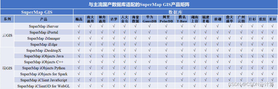 (3)SuperMap GIS产品与主流国产数据库的适配矩阵