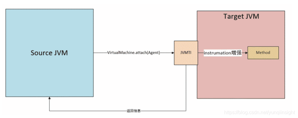 - JVMTIAgent(JVM Tool Interface):是一个动态库,利用 JVMTI 暴露出来的一些接口帮助我们在程序启动时或程序运行时 JVM Attach 机制,将 Agent 加载到目标 JVM 中。
