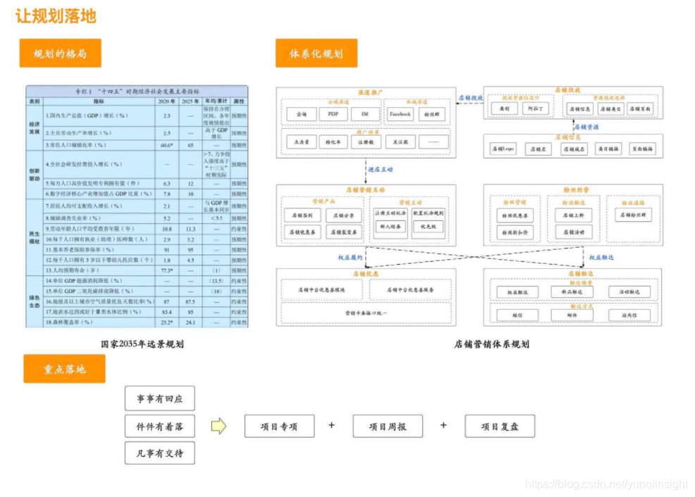 降维和精专又是从另外一个角度去思考问题,和前面两种方法构成了立体的视角。如果规划中能灵活运用这四种方法,整个规划的内容就丰富,既有广度的内容,又有深度的内容。