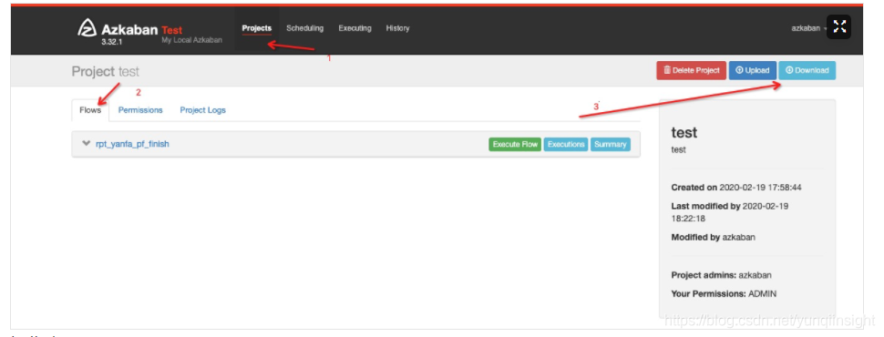 Azkaban界面支持直接Download某个Flow。Flow的导出流程:
