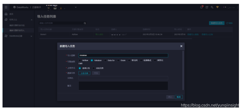 拿到了开源调度引擎的导出任务包后,用户可以拿这个zip包到迁移助手的迁移助手->任务上云->调度引擎作业导入页面上传导入包进行包分析。