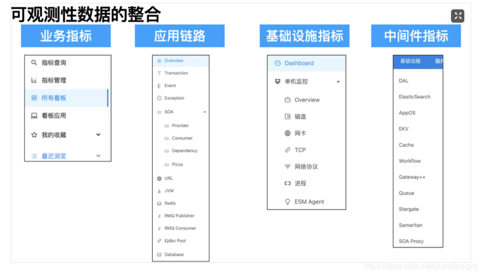 可观测性数据的整合:业务指标 + 应用链路 + 基础设施指标 + 中间件指标