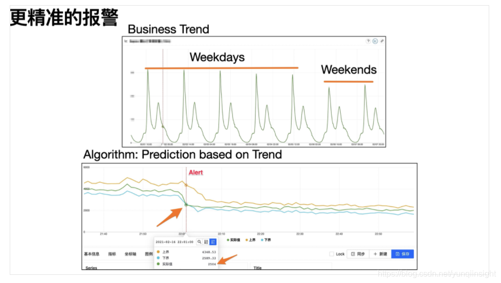 我们经过调研既有规则,与饿了么的业务场景,推出了全新的“趋势”报警。简要算法如下: