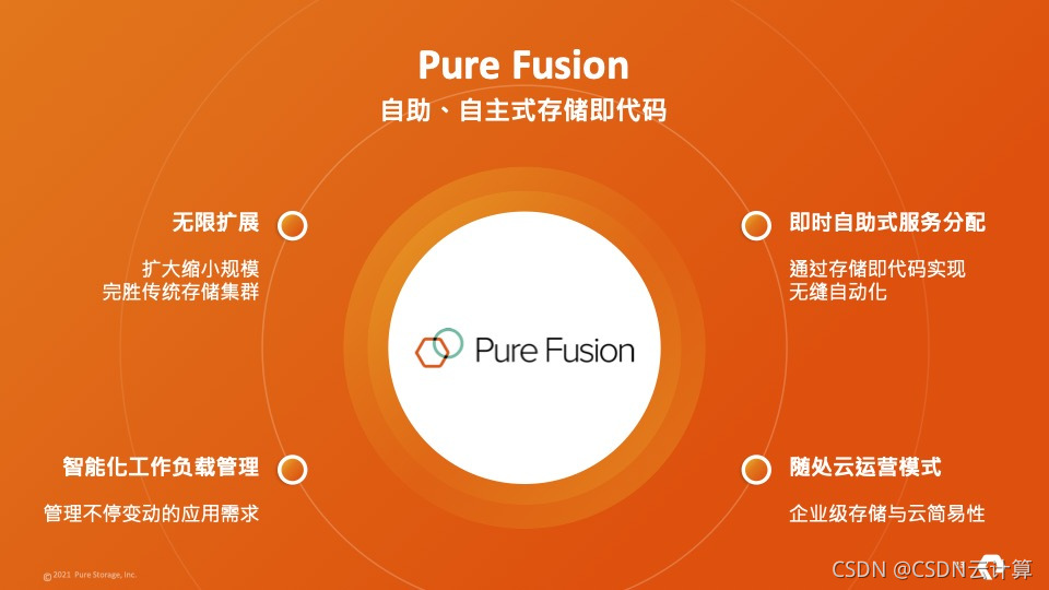 ● Pure Fusion™ 这套自助、自主式“存储即代码”(Storage-as-Code)平台专为无限扩展而打造,让客户能将云运营模式运用至任何地方,企业可通过类似云服务的方式运行、操作及消费传统存储。