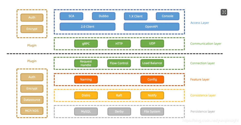 Nacos 2.0 架构层次如下图,它相比Nacos1.X的最主要变化是: