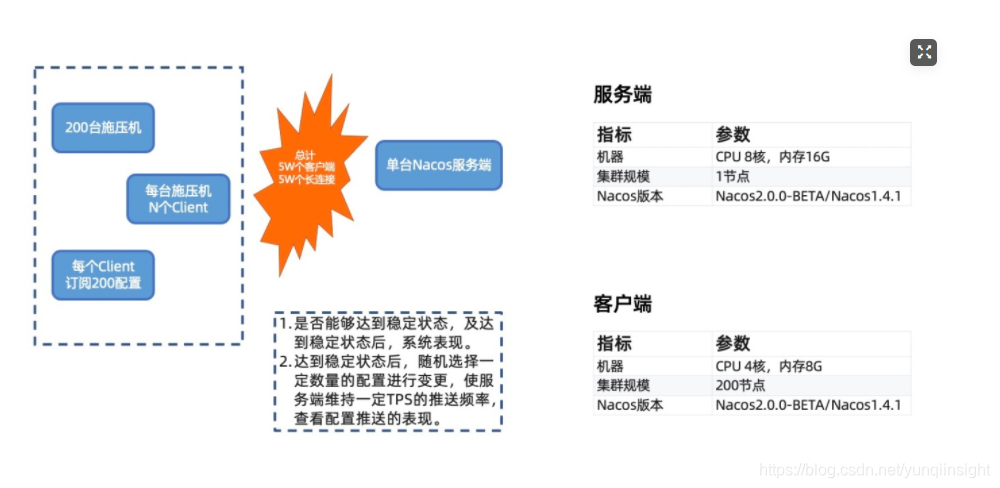 由于配置是少写多读场景,所以瓶颈主要在单台监听的客户端数量以及配置的推送获取上,因此配置管理的压测性能主要集中于单台服务端的连接数量以及大量推送的比较。