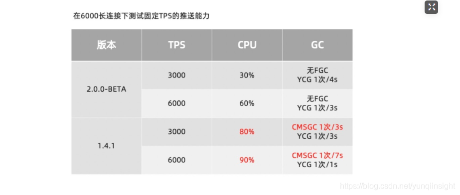 在频繁变更的场景,两个版本都处于6000个客户端连接中。明显可以发现2.0版本的性能损耗要远低于1.X版本。 在3000tps的推送场景下,优化程度约优化了3倍。