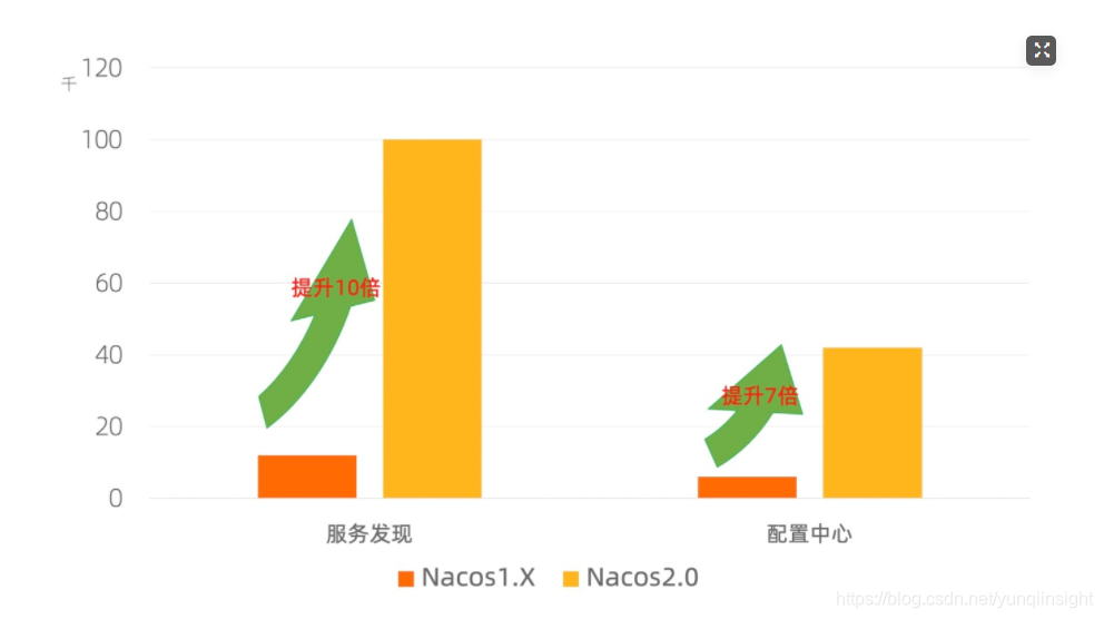针对服务发现场景,Nacos2.0能够在10W级规模下,稳定运行;相比Nacos1.X版本的1.2W规模,提升约10倍。