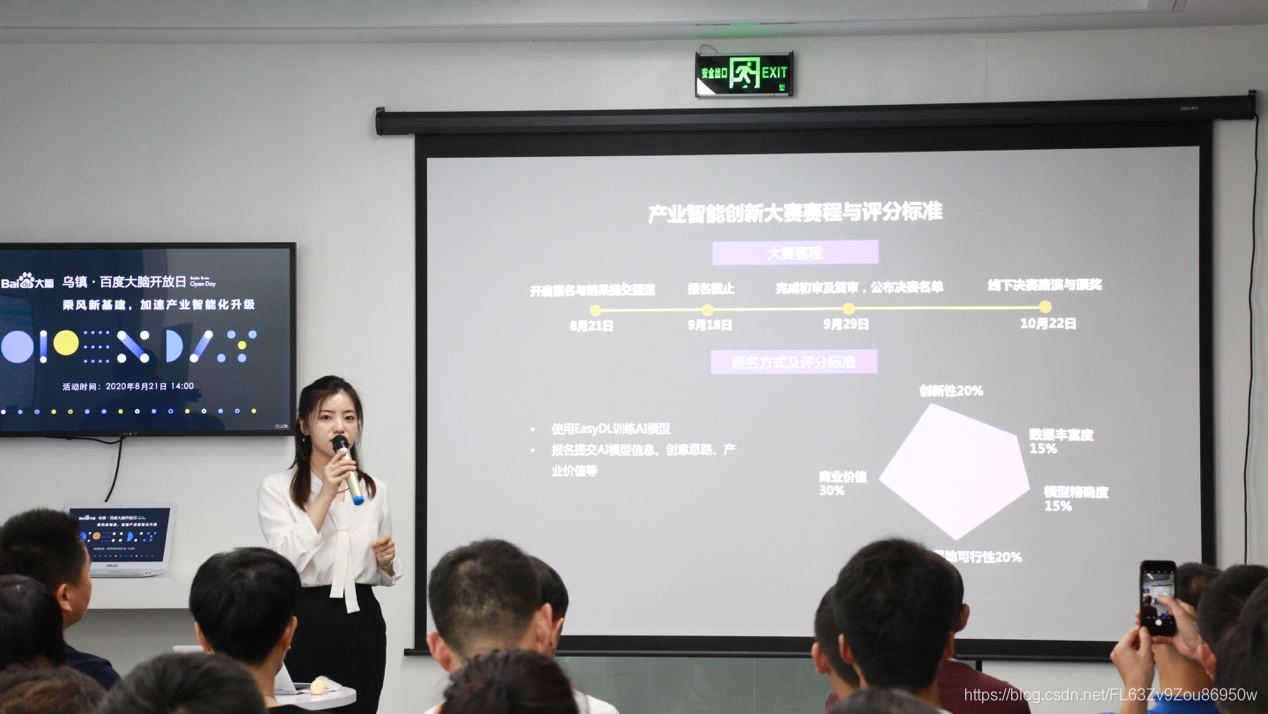 为了吸引更多企业、开发者感受AI的魅力,此次开放日上,百度携手乌镇镇政府、桐乡市经济和信息化局、桐乡市工业互联网联合会正式启动乌镇X EasyDL产业智能创新大赛,无论企业还是个人,只要有AI应用落地的场景与需求,都可以通过本届大赛,定制AI服务,解决行业实际问题。目前大赛已在百度大脑AI开放平台AI Studio比赛板块开启报名通道。报名需要提交使用EasyDL训练AI模型信息、创意思路、产业价值等相关内容。大赛于9月底将完成初审和复审,并公布决赛名单;10月22日将迎来线下决赛路演与颁奖。