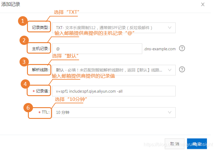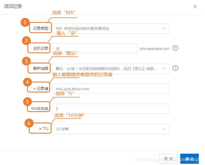 4 . 解析记录的配置,分别以MX记录、CNAME记录、TXT记录做示意参考。