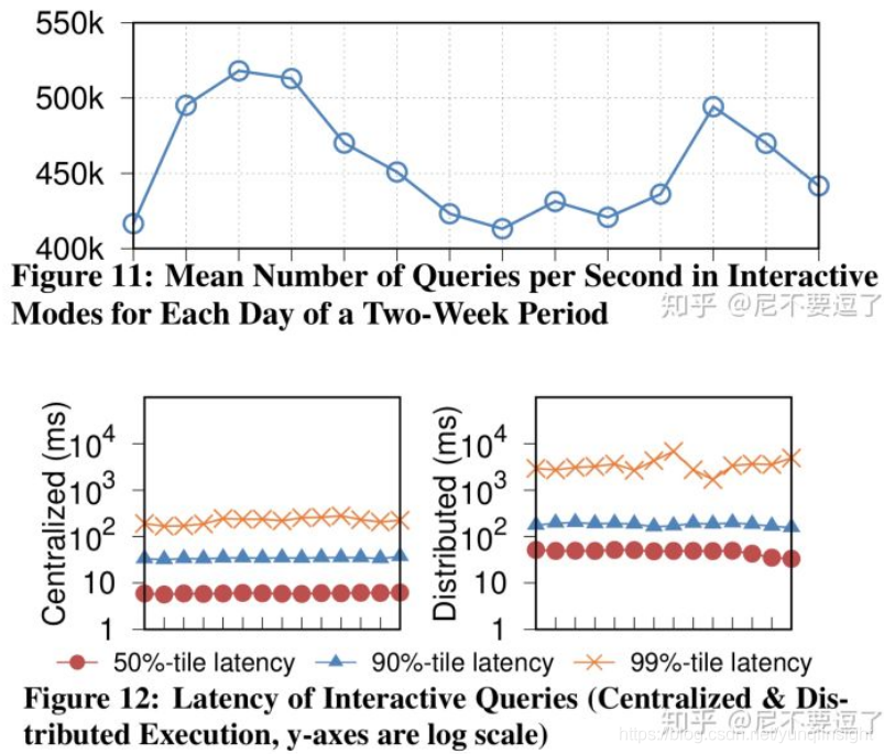 - Scalability: 在 F1 Query 中,short query 会在单个节点上执行,larger query 会以分布式的模式执行,largest query 以批处理 MapReduce 模式执行。对于这些模式,F1 Query 可以通过增加运算的并行度来优化。