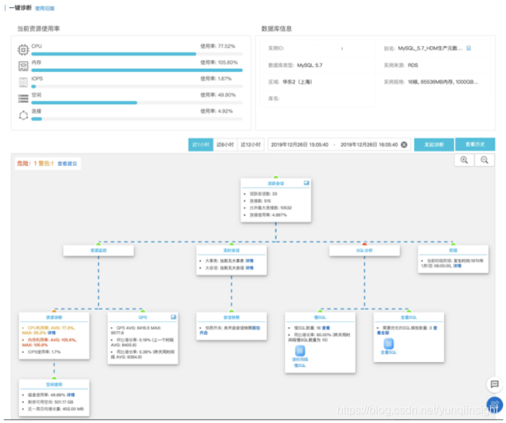 一键诊断,实时了解数据库运行情况、快速发现异常快速修复