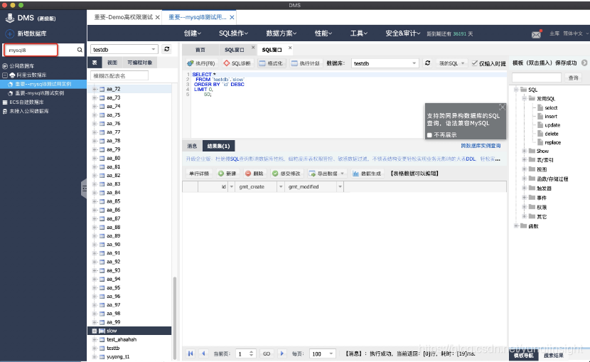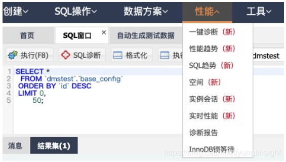 除了基础的数据查询开发功能,DMS还内置SQL审核、性能诊断优化、测试数据自动生成、多环境数据对比同步、数据库日志追踪回滚、不锁表变更、访问控制、敏感数据脱敏、安全审计等高端功能。