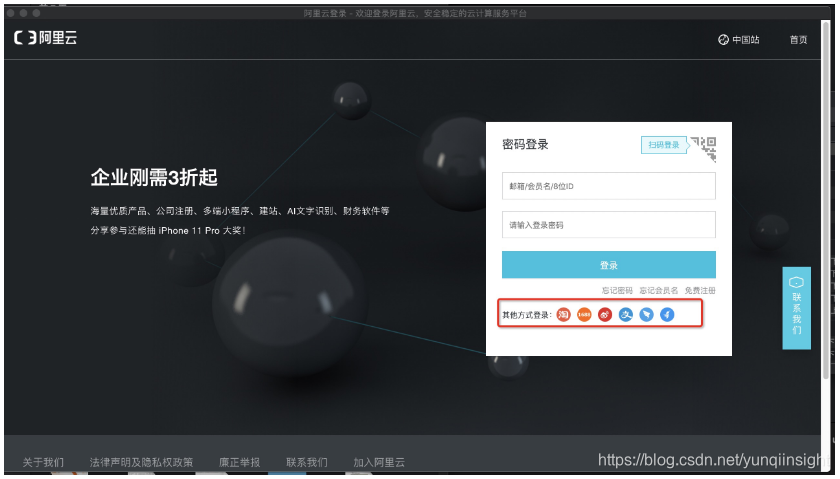 双击打开软件,进入到阿里云账号登录页面,可选多种登录方式