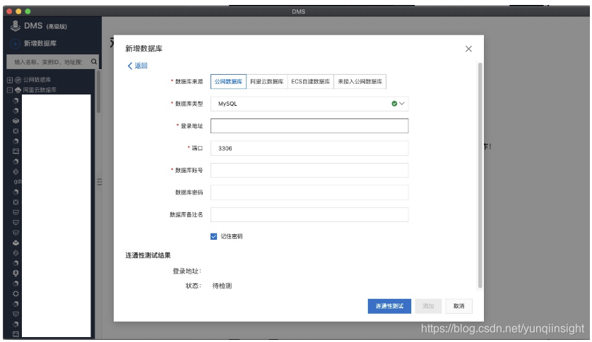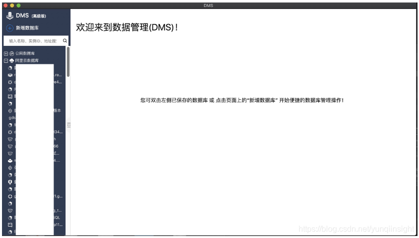 1)左侧展现所有已录入DMS使用的数据库资源列表(可与web端控制台数据库列表同步)