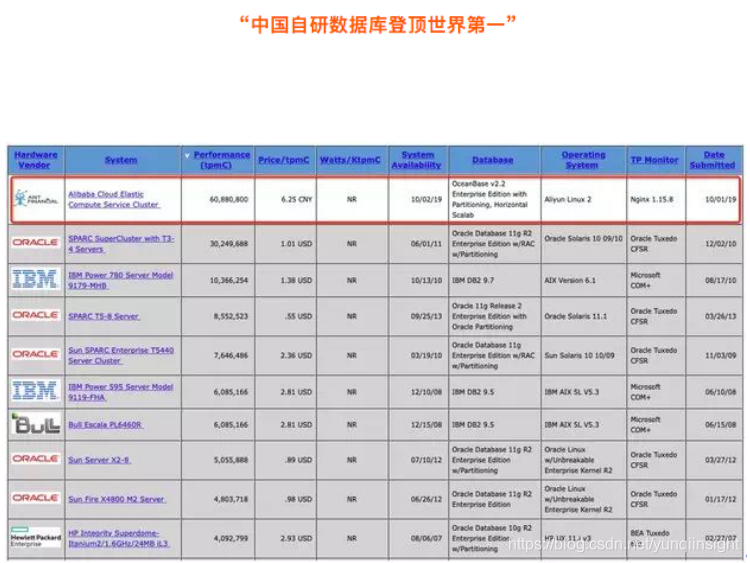 10月2日,OceanBase 作为中国自研数据库产品,登顶被誉为“数据库领域世界杯”的TPC-C 测试全球榜首,一举超过诸多传统IT服务厂商;随后,在第六届世界互联网大会上,阿里云自研数据库 POLARDB 当选世界互联网领先科技成果。