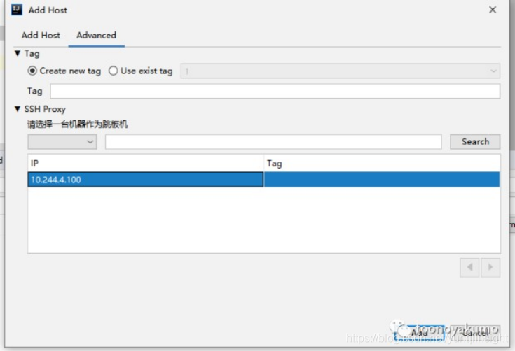 在选择 Alibaba Cloud Toolkit -> host 单击 add host ,弹出以下界面,我们先来配置堡垒机相关的信息