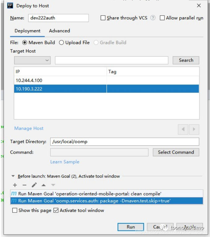 很显然我的 auth 需要部署到 222 机器上,然后他是一个 maven 项目,我希望它打包之后部署到目标机器的 /usr/local/oomp 下。