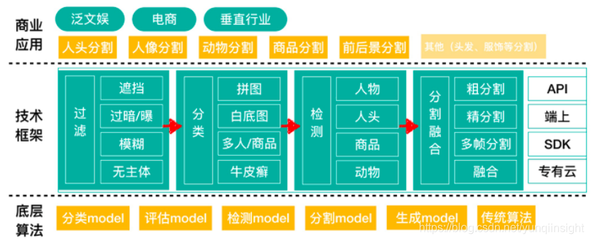 目前分类、检测模型相对比较成熟,而评估模型则需要根据不同场景做一些定制(电商设计图、天然摄影图等),分割精度不足,是所有模块中最薄弱的一个环节,因此成为了我们的主战场。详述如下: