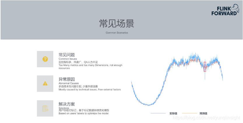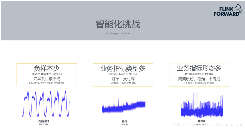 - 智能告警无法适用于全部场景:有些机器的CPU的使用率可以直接设定阈值,达到95%时告警,非常方便简单。但是如果用智能告警的方式拟合其趋势,意义不大。另外节假日大促时,会发放门票、酒店优惠券等活动,其订单量可能快速增长10倍到100倍。这种突发的快速增长在历史数据也很难学习到。上述场景的数据智能告警比较难处理。