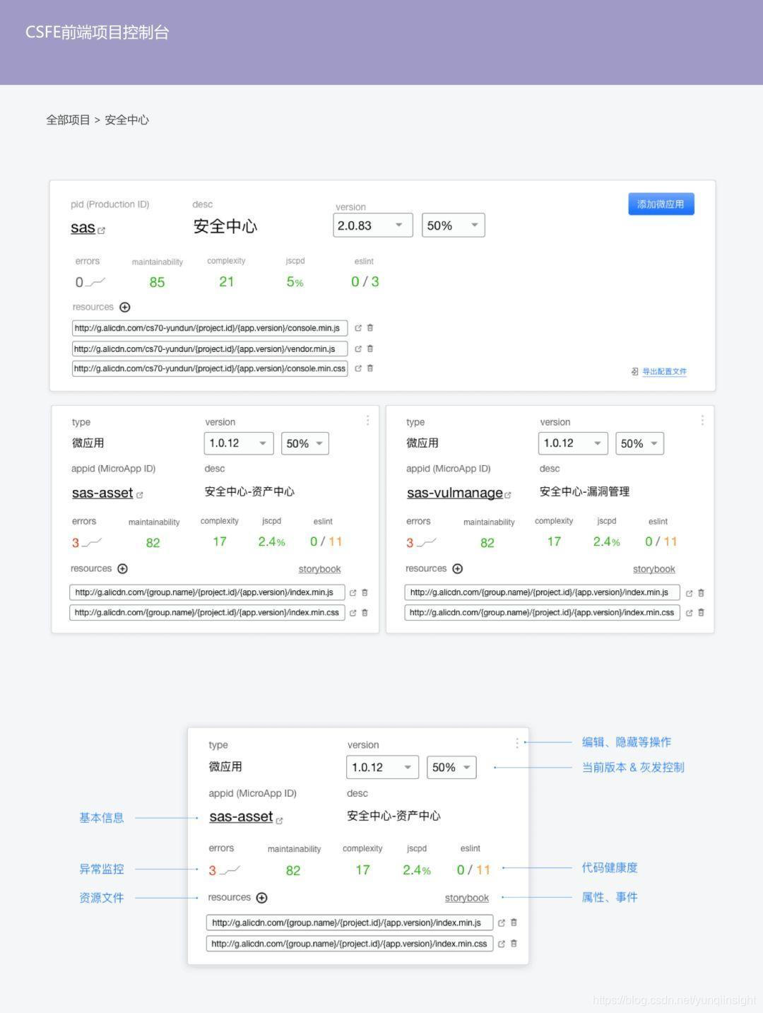 下面的原型图,就是一个最基本的配置中心的样貌。微前端体系要可控、可观察。