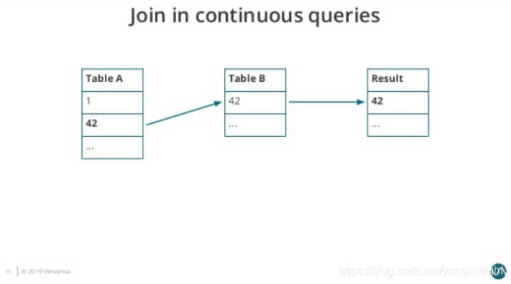 我们通过例子来看基本的 Nested Join 在实时 Streaming SQL 的基础实现(案例及图来自 Piotr Nowojski 在 Flink Forward San Francisco 的分享[2])。