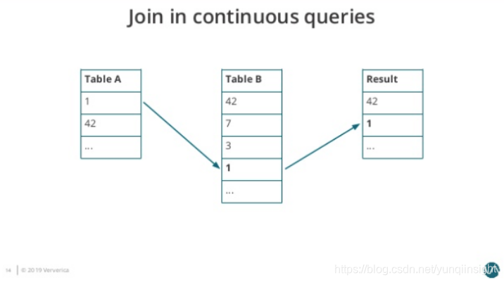 接着 Table B 依次接受到三个新的元素,分别是 7、3、1。因为 1 匹配到 Table A 的元素,因此结果表再输出一个元素 1。