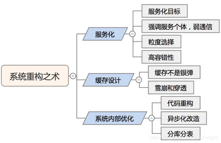 在系统重构工作中,会使用一些具体的手段来解决所面对的特定问题,在术的部分聊聊重构中经常使用的一些方案,方案的具体内容资料很多就不写,我们这里重点聊聊相关方案应用时要注意考虑哪些问题。