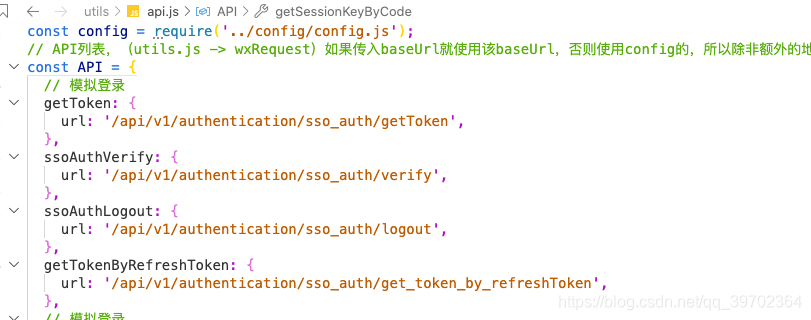 isLoading是用来判断某些接口是否需要wx.showLoading(加载中),就可能我不是所有的接口都需要loading的提示,只是部分请求时长比较久的接口需要,所以我们存了一个需要loading的数组,判断请求的接口url是否存在这个数组中,存在就显示loading,而这个数组的数据都是从api.js里面拿出来的,如图一所示,我们每个API都是以对象的方式存的,为什么这样做呢,主要是想灵活点,例如我可能需要调不同的服务器的接口,那么我就可以配置多一个baseUrl的字段,调接口就传多一个baseUrl,如果没有传就使用默认的服务器域名