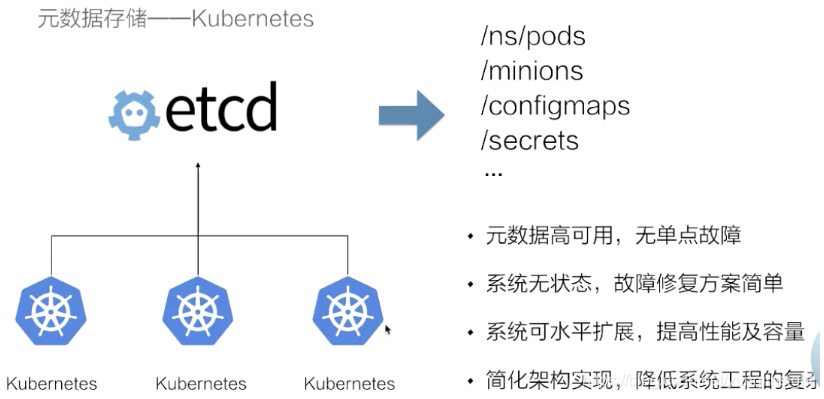 Kubernetes 将自身所用的状态存储在 etcd 中,其状态数据的高可用交给 etcd 来解决,Kubernetes 系统自身不需要再应对复杂的分布式系统状态处理,自身的系统架构得到了大幅的简化。