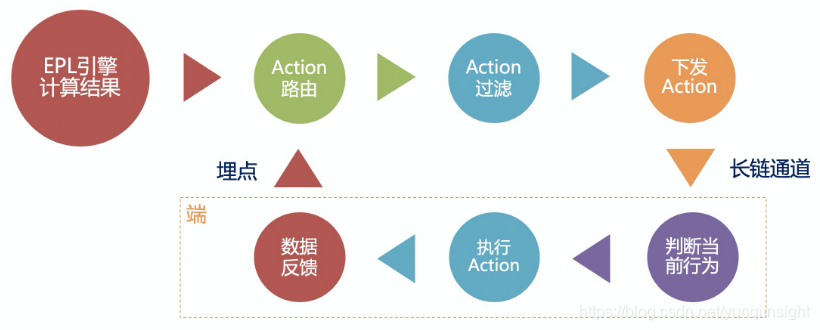 - Action下发层会根据策略配置执行,可以是通用的触达,比如发push、短信;也可以是调用其他业务系统,比如调用安全系统处罚;也可以将Action下发到端上执行;